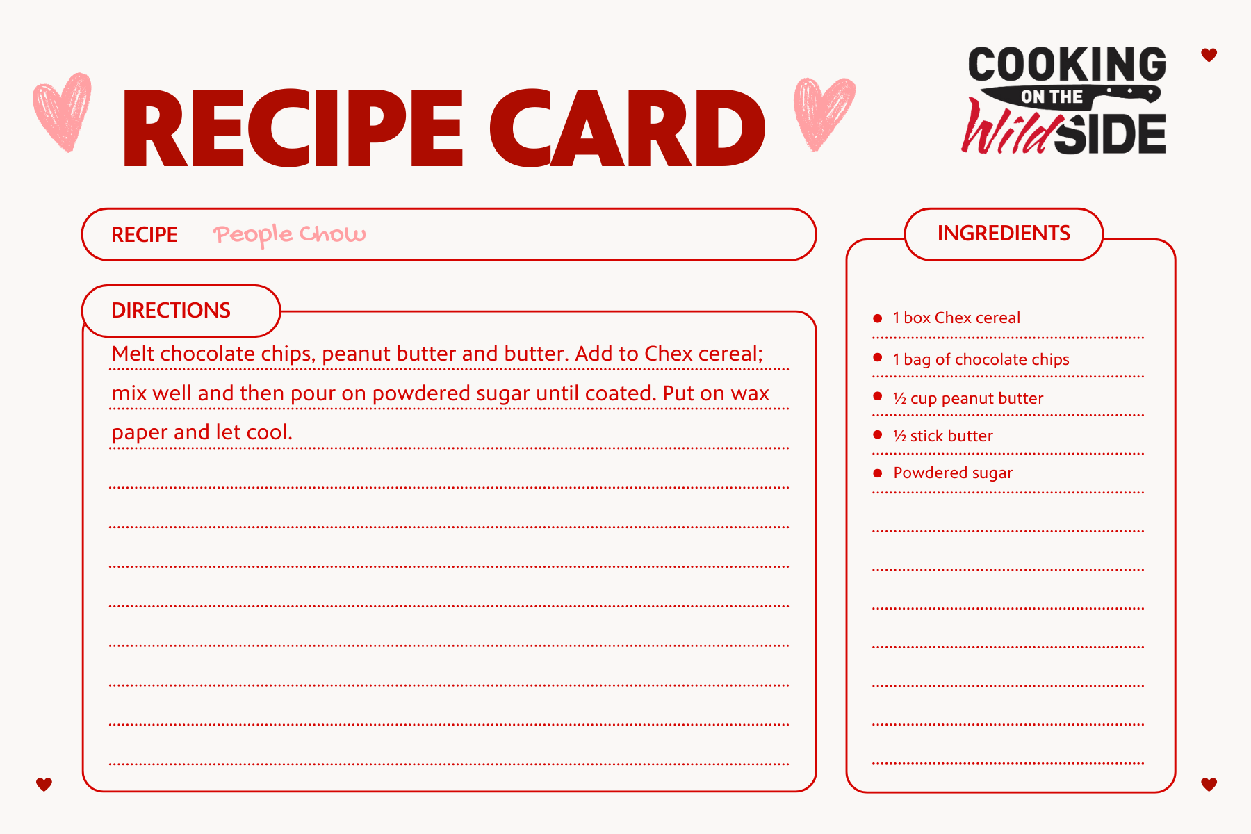 We have heard of puppy chow, but never people chow. And, to be honest, at this point, we’re not sure either one sounds better than the other, but if you want a delicious snack that you can eat snuggled up on the couch with your significant other watching Arkansas TV, then this easy dessert will be right up your alley!